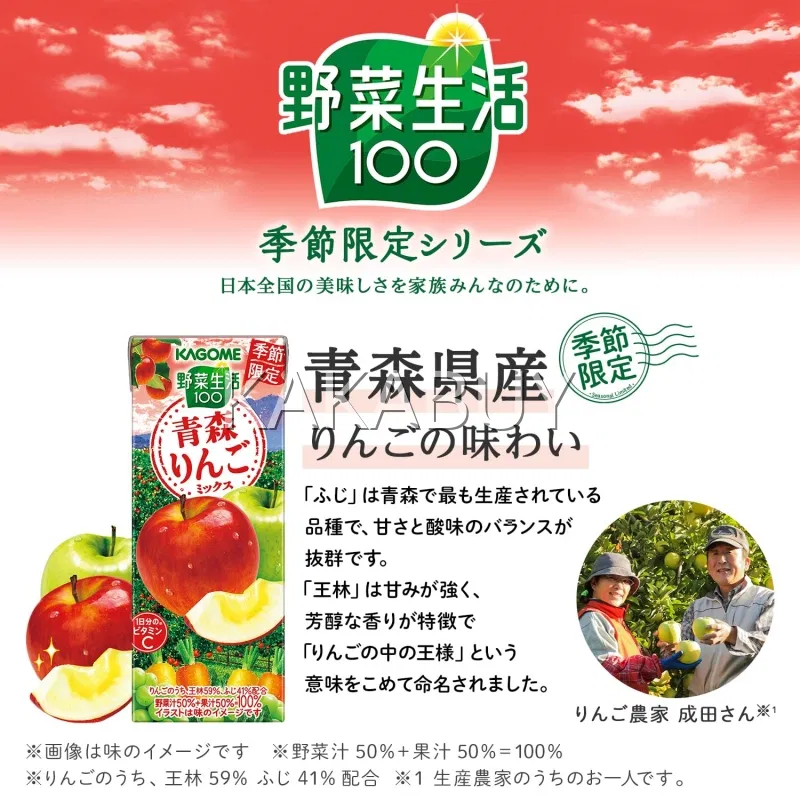 【季节限定】日本KAGOME可果美 野菜生活100 营养混合果蔬汁 青森苹果沙拉 195ml