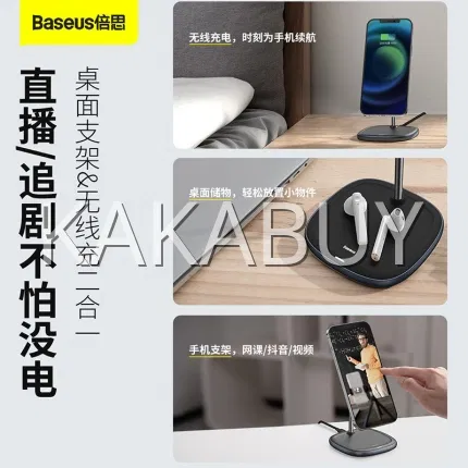 倍思 天鹅 二合一无线磁吸充电支架 黑色