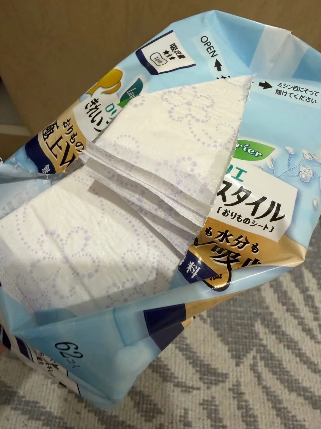 日本KAO花王 LAURIER乐而雅 银离子消臭抑菌卫生护垫 清新薄荷香 14cm*62片