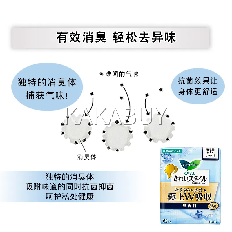 日本KAO花王 LAURIER乐而雅 银离子消臭护垫 14cm*62片