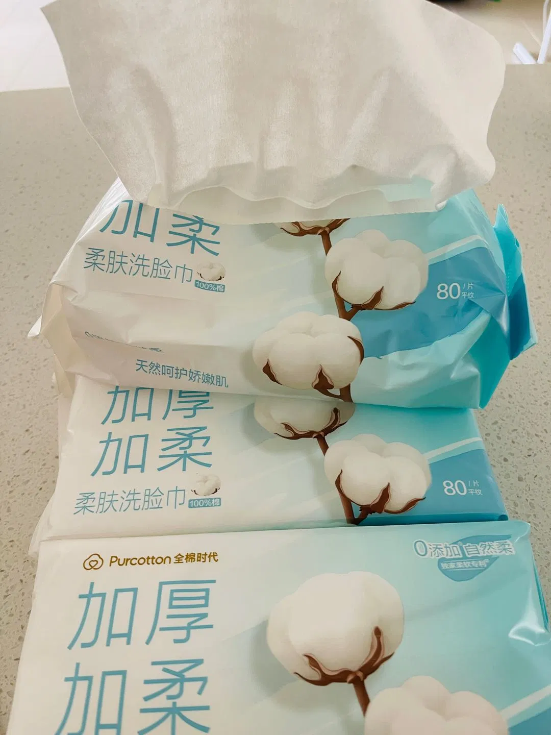 Purcotton全棉时代 纯棉净颜洗脸巾 80抽*3包
