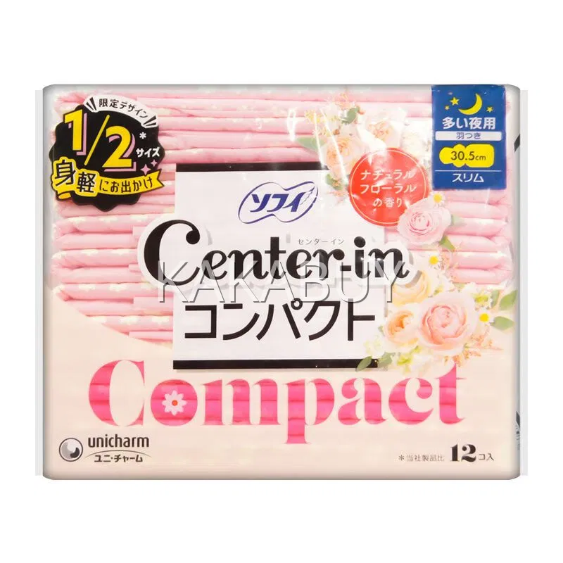 日本UNICHARM尤妮佳 Sofy苏菲 Center-in口袋魔法卫生巾 量多夜用 天然皂香 30.5cm*12片入