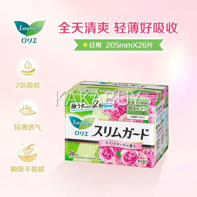 日本KAO花王 LAURIER乐而雅 零触感系列 超薄瞬吸量特多日用卫生巾 玫瑰花香 25cm*18片