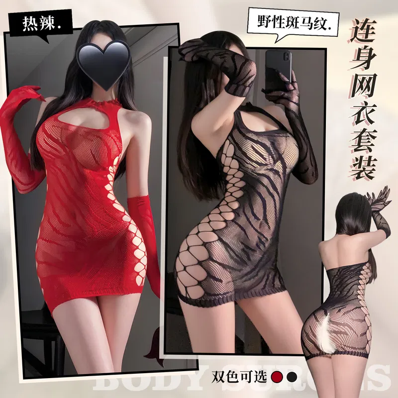 霏慕 热辣野性斑马纹连身网衣套装 7401 多色选