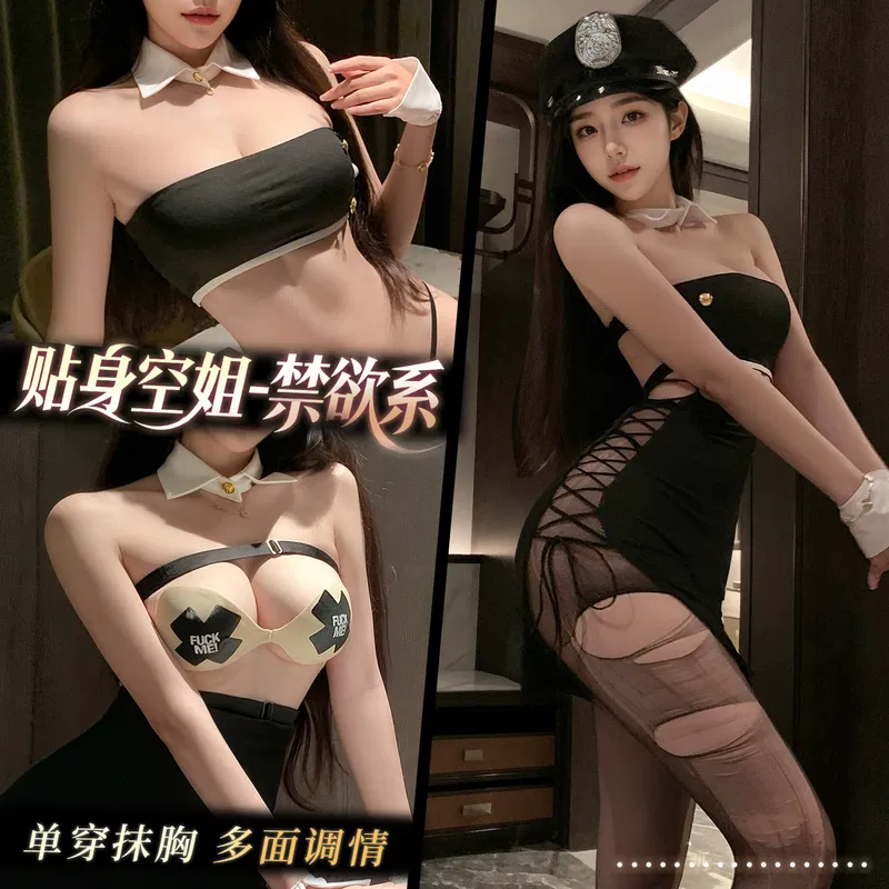 霏慕 贴身诱媚空姐包臀裙套装 ZY133+7660黑教官帽+7301黑手撕袜