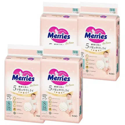 日本KAO花王 merries 素肌系列 纸尿裤 S码 4-8kg 增量版 74枚入