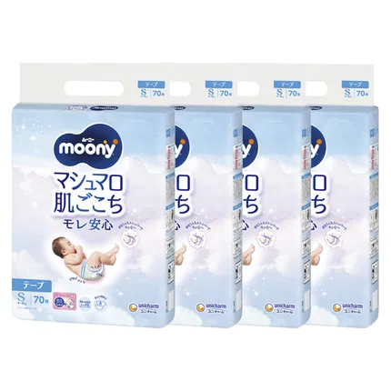 日本UNICHARM尤妮佳 MOONY 畅透系列 纸尿裤 S码 4-8kg 70枚入