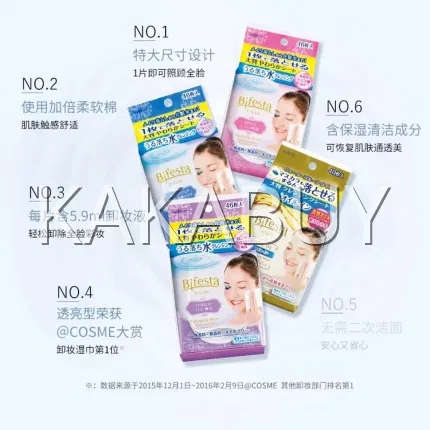 日本MANDOM曼丹 Bifesta 水嫩即净免洗卸妆湿巾 蓝色透亮型 46枚