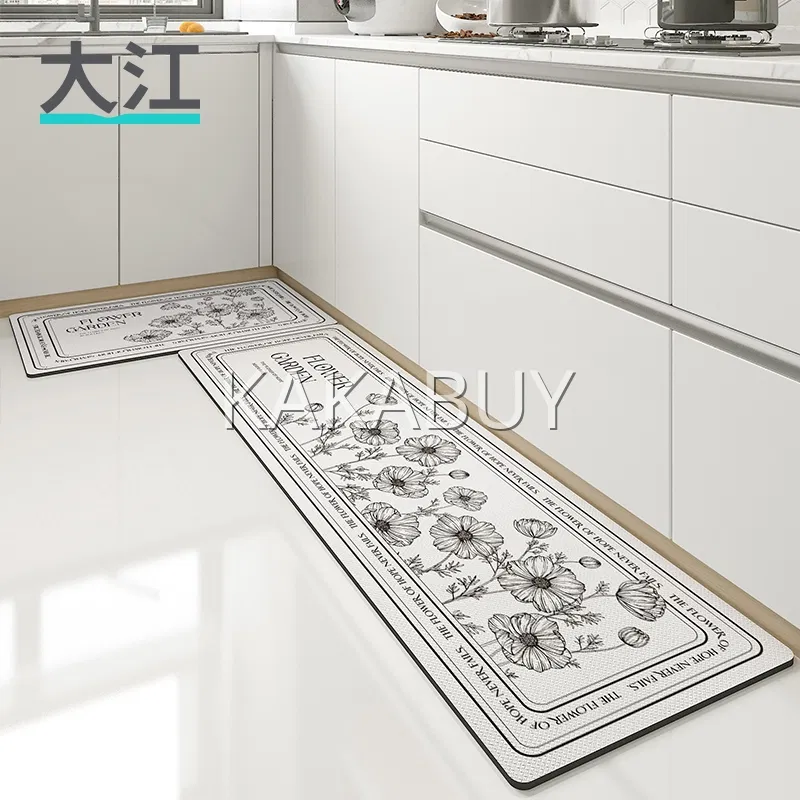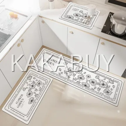 【2件套】大江 PU皮革厨房地垫套装 #野生小白花A5(45*75cm+45*150cm)