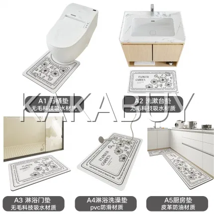 【3件套】大江 科技绒浴室地垫 #繁花似锦 A1+A2+A3(40*60cm)套装