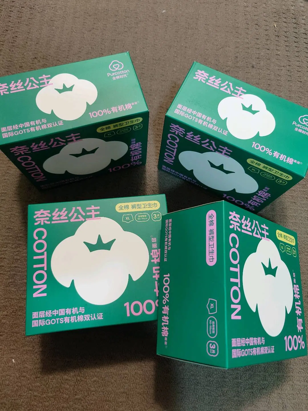 Purcotton全棉时代 奈丝公主 自然系有机棉安睡裤 XL码 3片