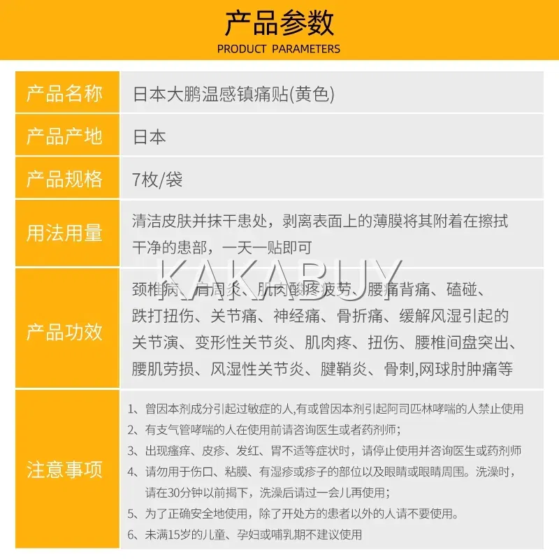 日本TAIHO大鹏制药 温感止痛贴 7片入