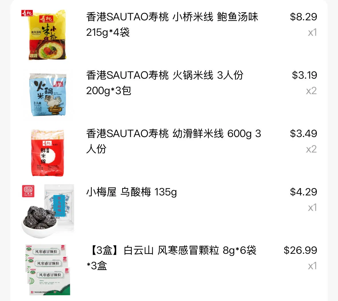 香港SAUTAO寿桃 小桥米线 雪菜火鸭汤味 215g*4袋
