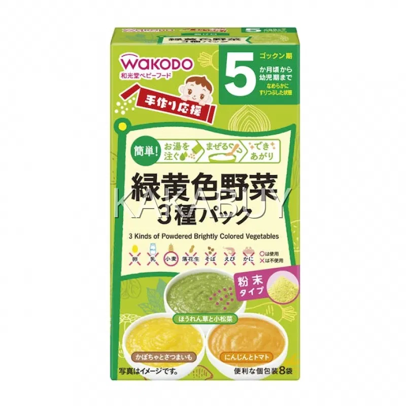 日本WAKODO和光堂 绿黄色蔬菜拌饭料 沙丁鱼+鲣鱼 9个月以上 2.2g*6袋入