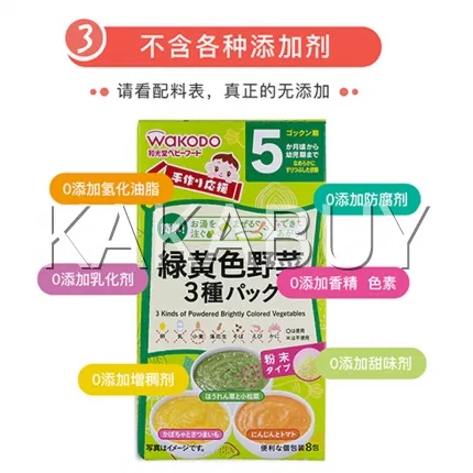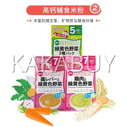 日本WAKODO和光堂 +Ca高钙系列 绿黄色蔬菜小馒头 7个月以上 3袋入