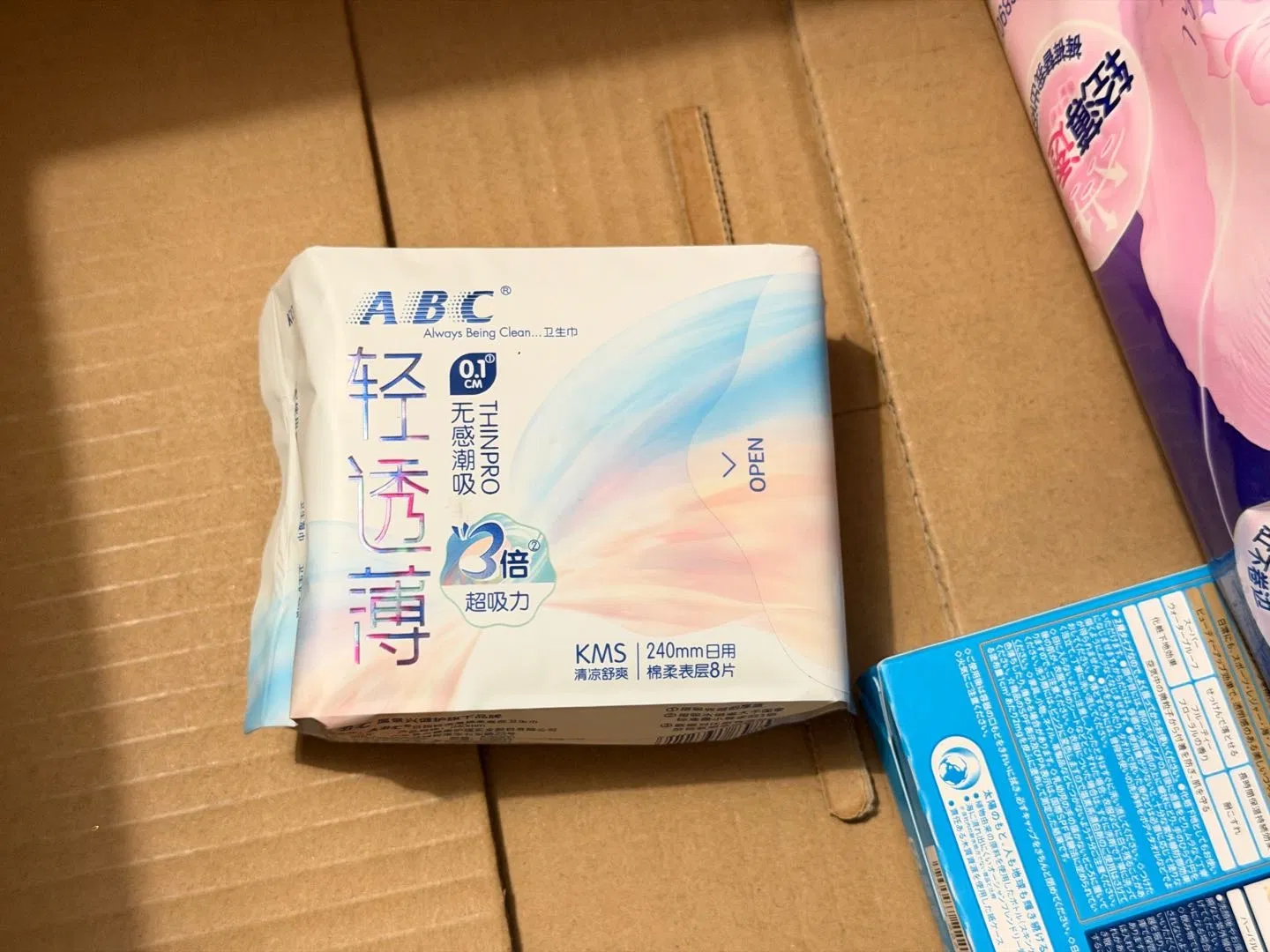 ABC KMS系列 超吸纤薄蓝芯3卫生巾 日用 240mm*8片入