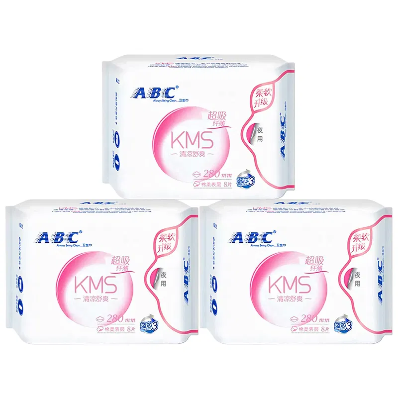 【3包】ABC 轻透薄系列 KMS清凉舒爽卫生巾 夜用 280mm*8片*3包入