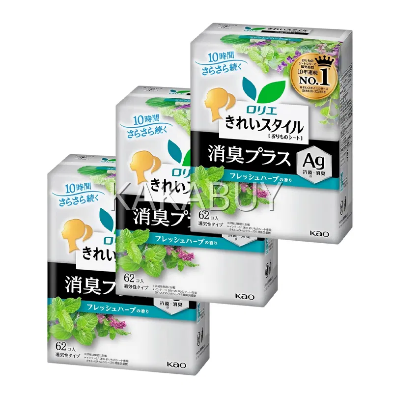 日本KAO花王 LAURIER乐而雅 银离子消臭抑菌卫生护垫 清新薄荷香 14cm*62片