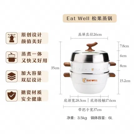 SHUEHO树可 元气菜菜搪瓷双层蒸锅 28cm