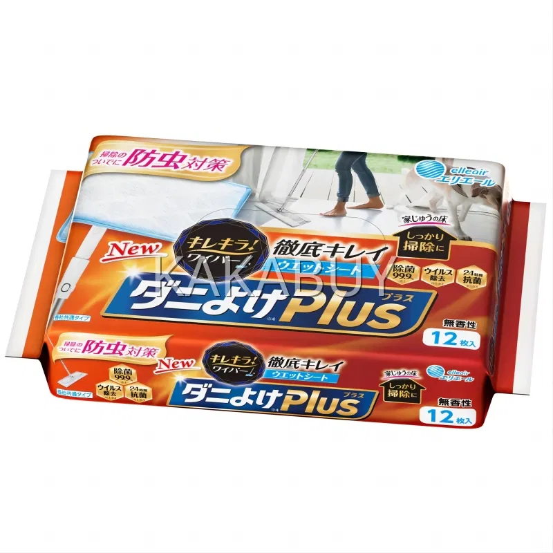 【3包】日本大王 elleair爱璐儿 轻巧拖把 专用湿巾PLUS 除菌除螨款 无香型 12枚*3包入