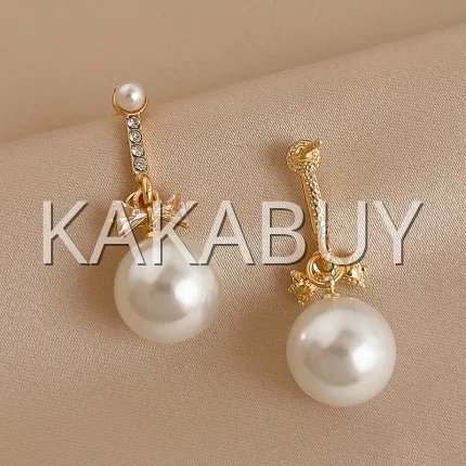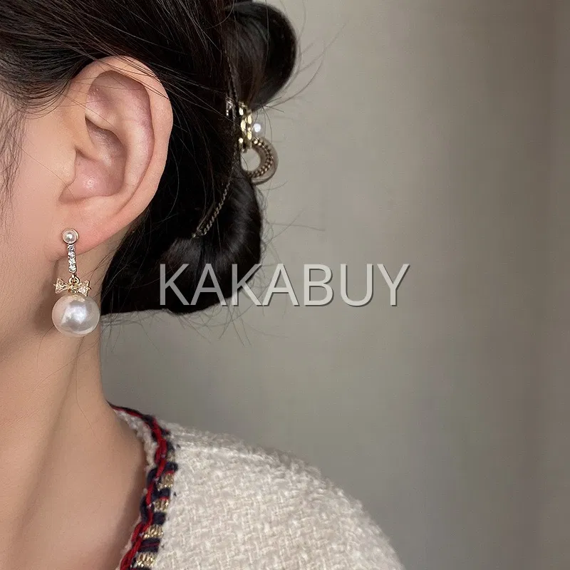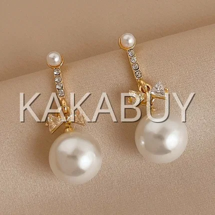 锆石蝴蝶结珍珠耳坠 925银针 一对装 2色选