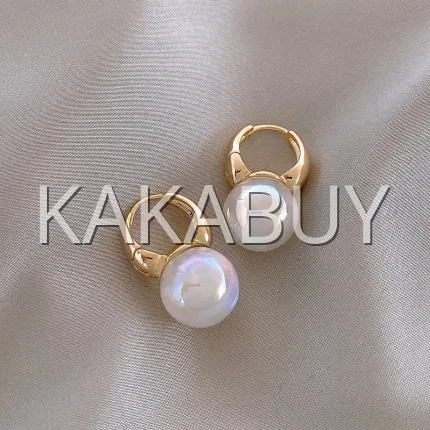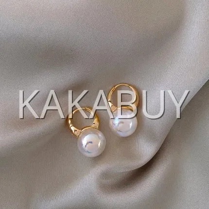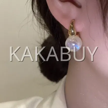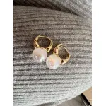 扁圆大颗珍珠耳钉 925银针 一对装 多色选