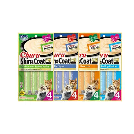 保质期2026-04-10 | INABA伊纳宝 Skin&Coat 啾噜猫咪肉泥条 14g*4支装 海外版 多味选