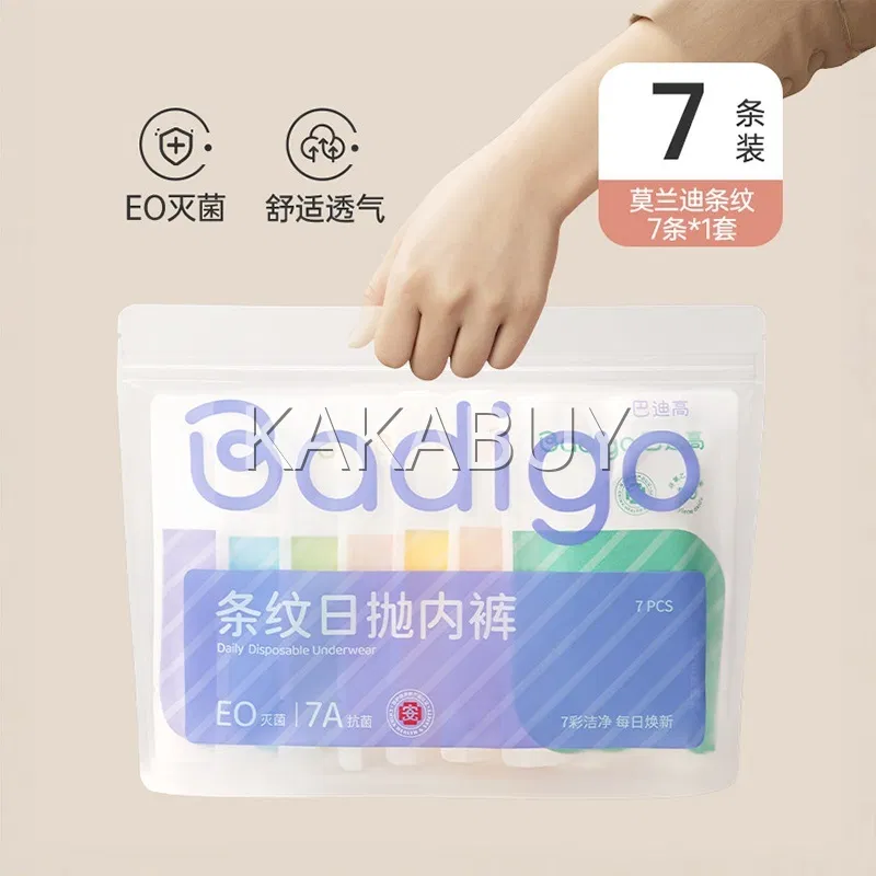 【3包】巴迪高 便携一次性女士纯棉内裤 条纹款 7条装*3 多尺码选