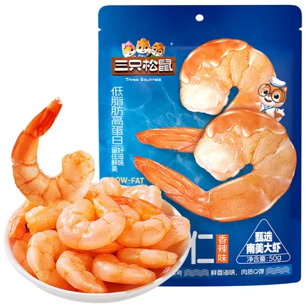 三只松鼠 即食低脂虾仁 香辣味 50g 内含独立小包