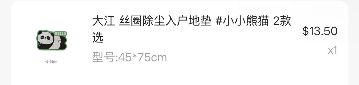 大江 凯尼绒入户除尘地垫 #平安熊猫 2款选