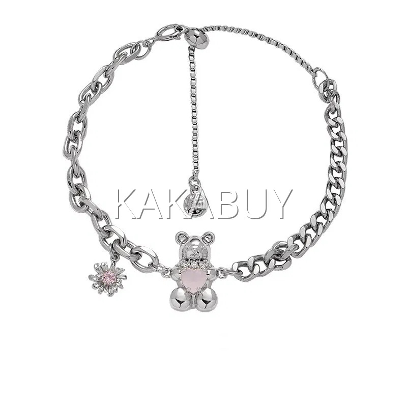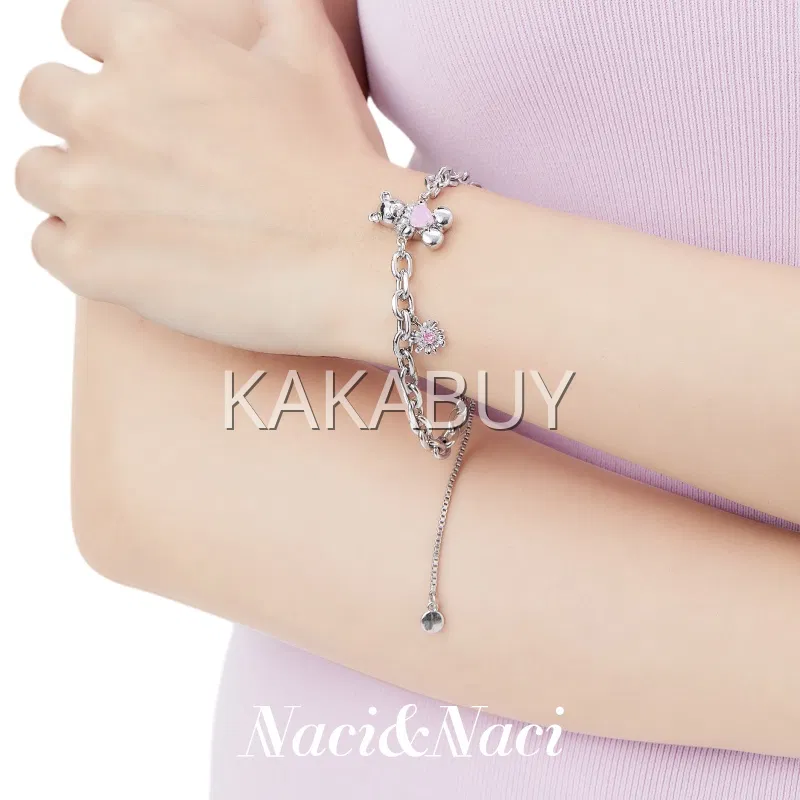 小众设计爱心猪鼻子钛钢拼接手链 2款选