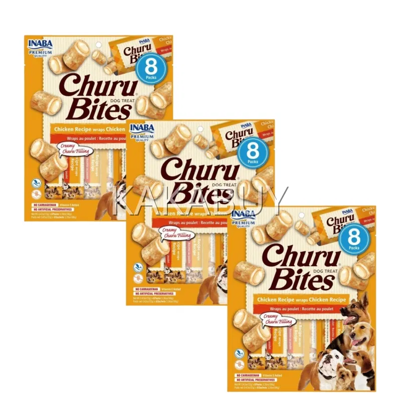 【3包】INABA伊纳宝 ChuruBites 啾噜比卷流芯粒粒 犬用零食 10g*8支装 USD724鸡肉芝士味*3包入 海外版