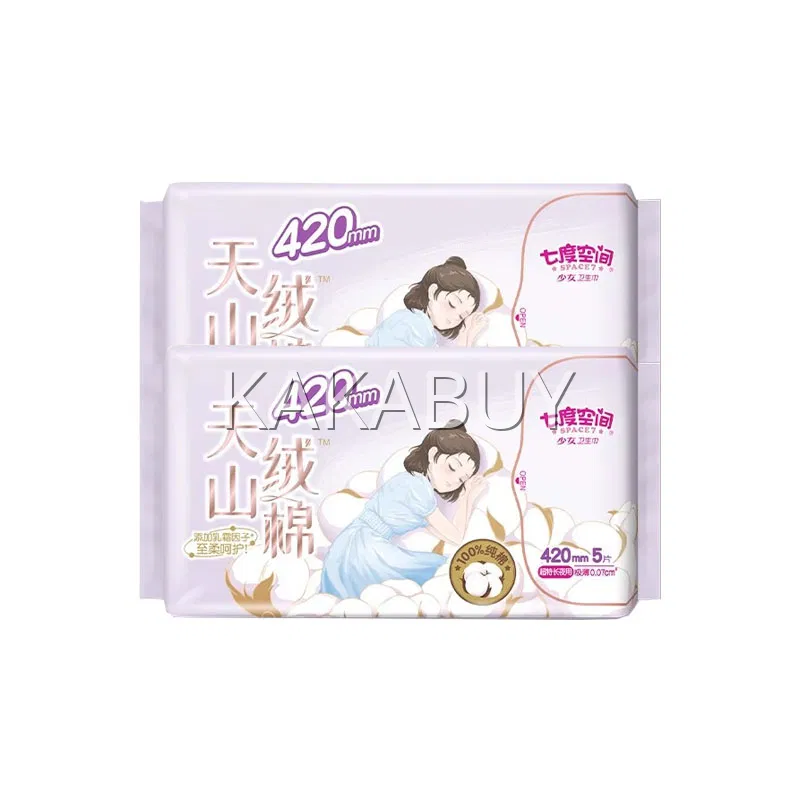 七度空间 天山绒棉极薄卫生巾 超特长夜用 420mm*5片入
