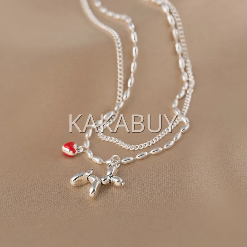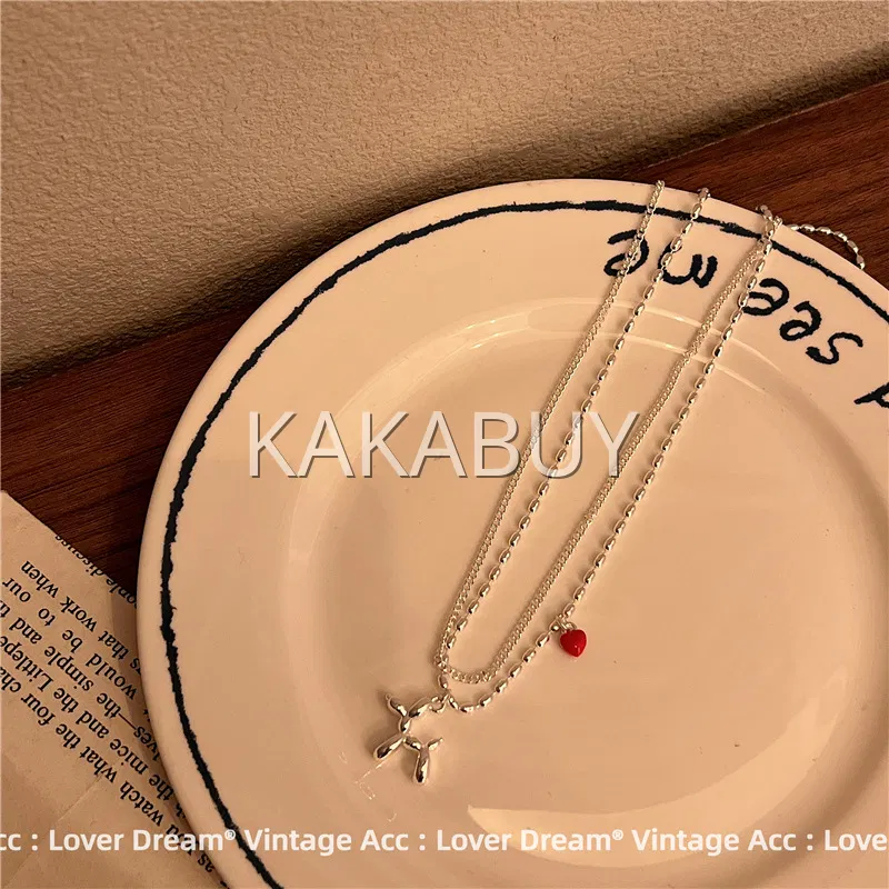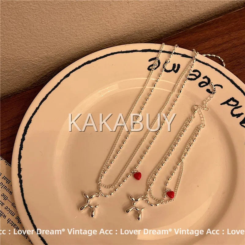 原创小众樱花粉爱心拼接双层合金项链