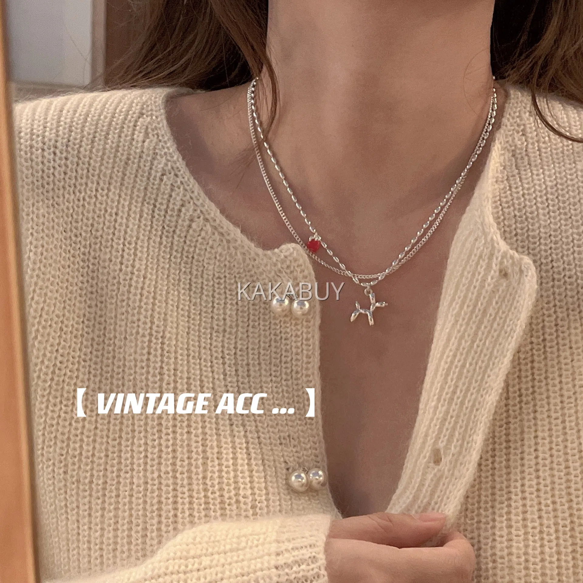 欧美复古嘻哈风长款银色毛衣链 2款选