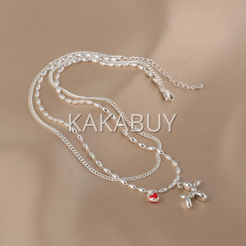 双层男女同款叠戴钛钢吊坠项链 50cm