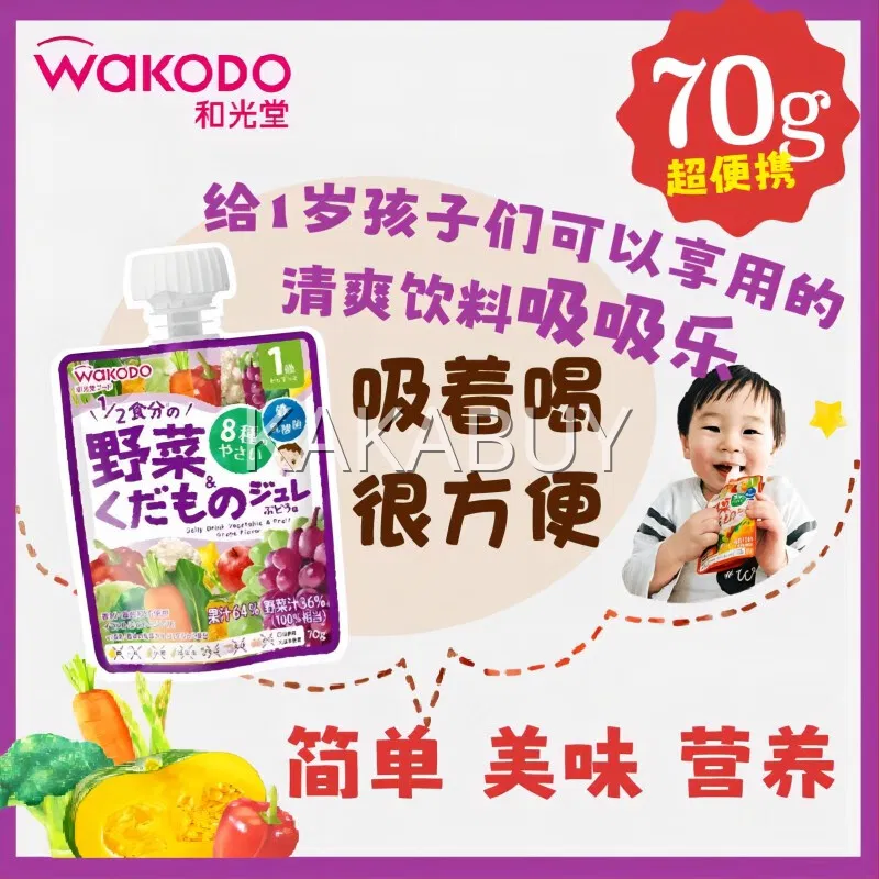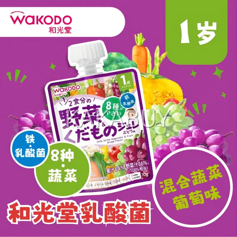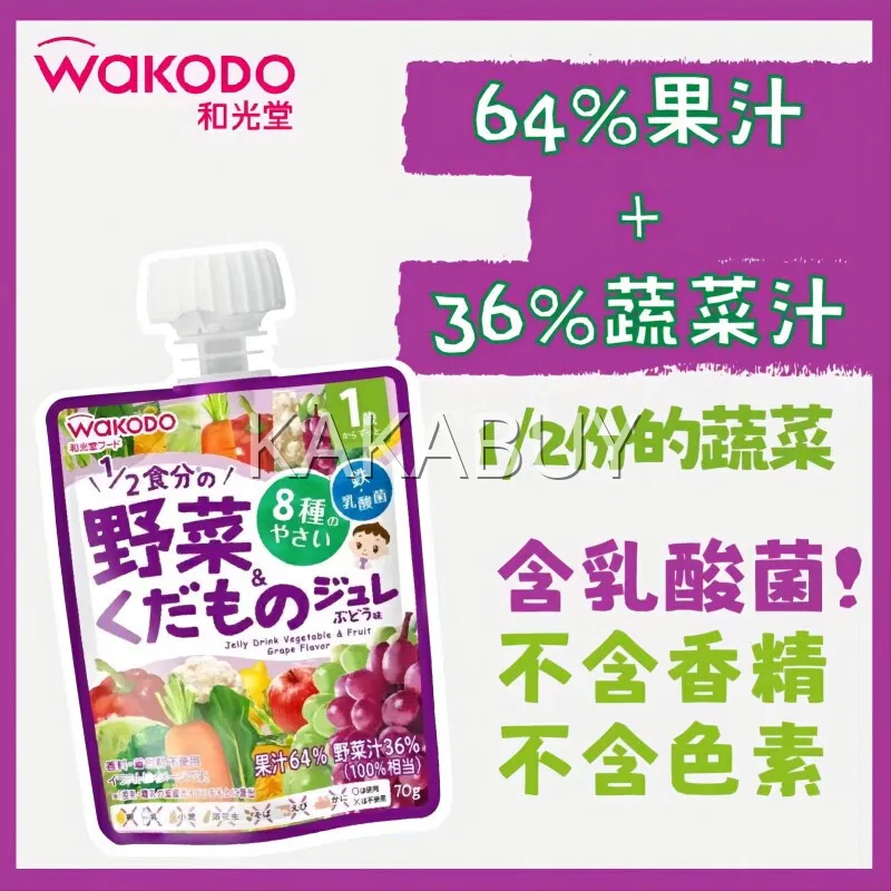 日本WAKODO和光堂 乳酸菌果泥吸吸乐 1岁以上 混合蔬菜苹果味 70g