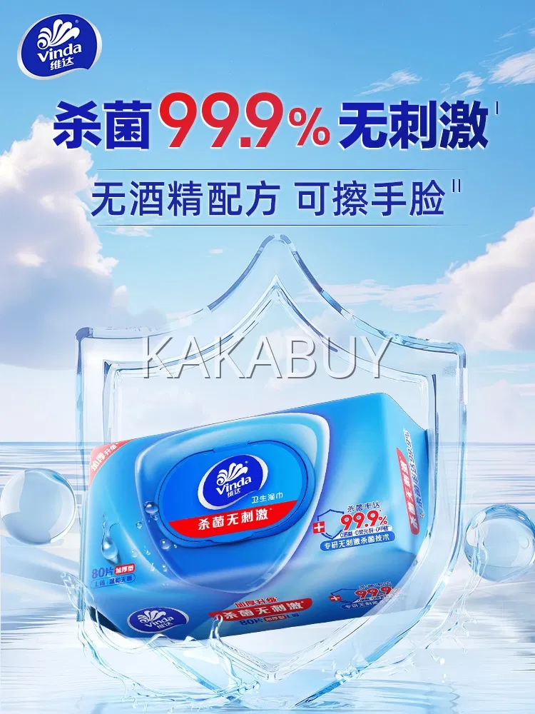 【3包】Vinda维达 杀菌无刺激 卫生湿巾 加厚型 L码 80片*3包