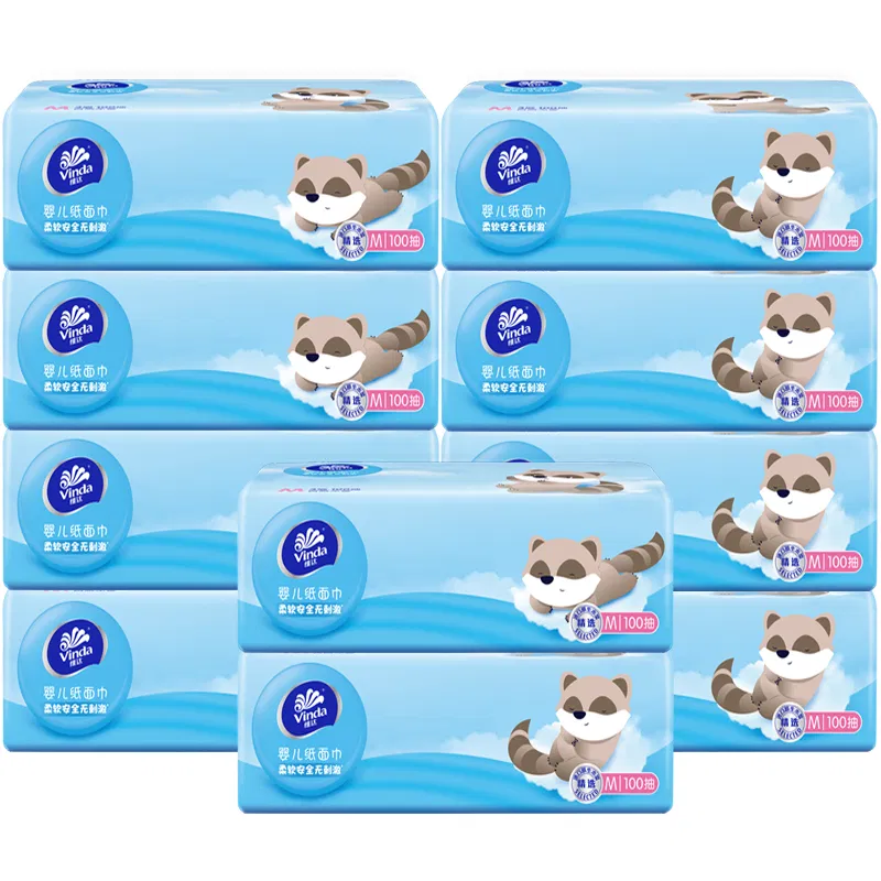 【10包】Vinda维达 婴儿纸面巾 2款包装款式随机 M码 100抽*10包入
