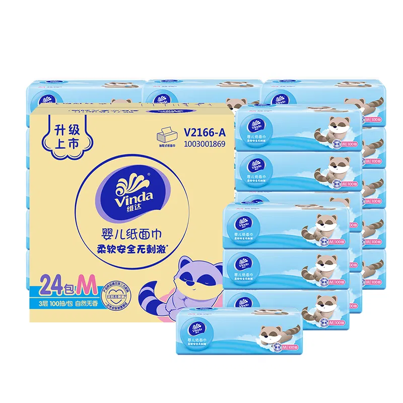 【整箱·M码·24包】Vinda维达 婴儿纸面巾 2款包装款式随机 M码 100抽*24包入