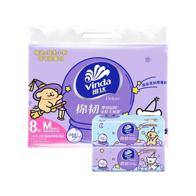 【3提】Vinda维达 × 线条小狗 棉韧纸面巾 M码 90抽*8包*3提