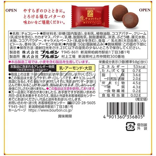 【冬季限定】日本BOURBON波路梦 Nama Truffe生巧克力球 黄油味 50g