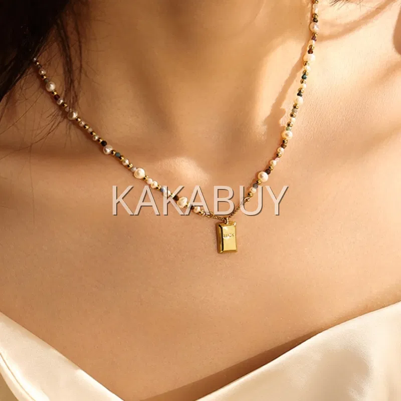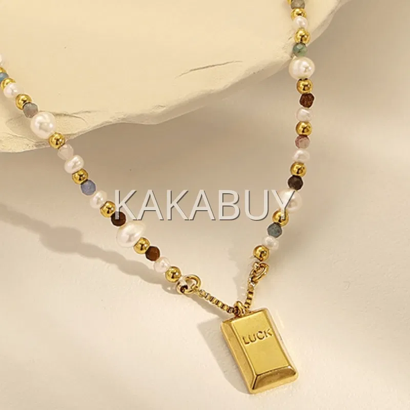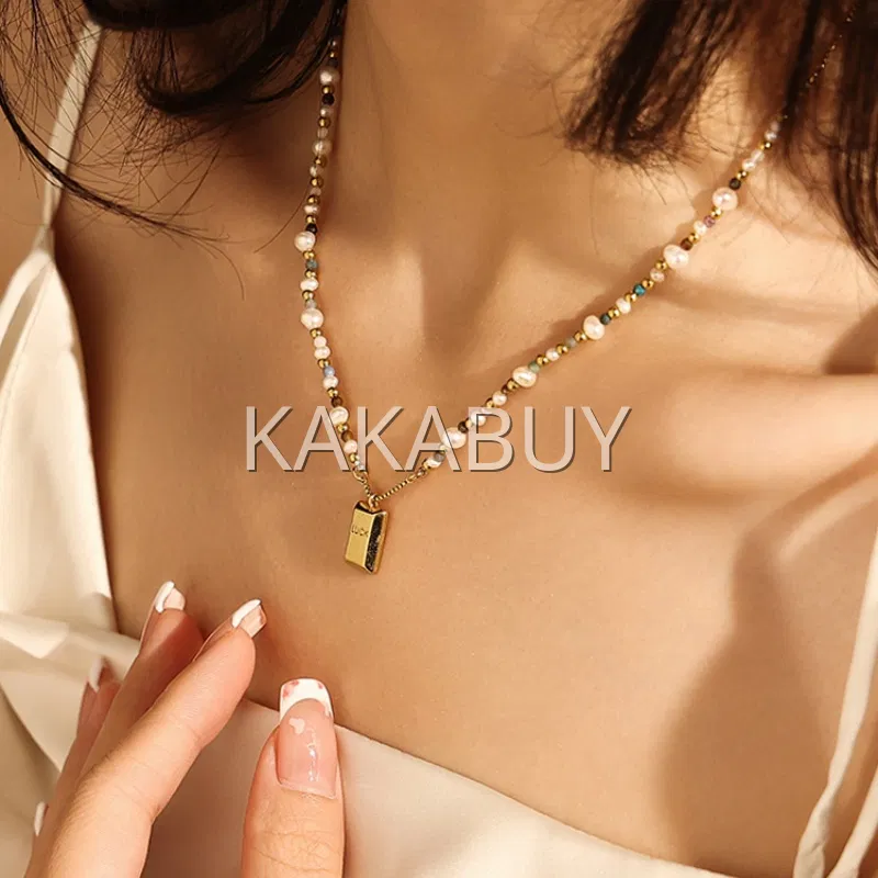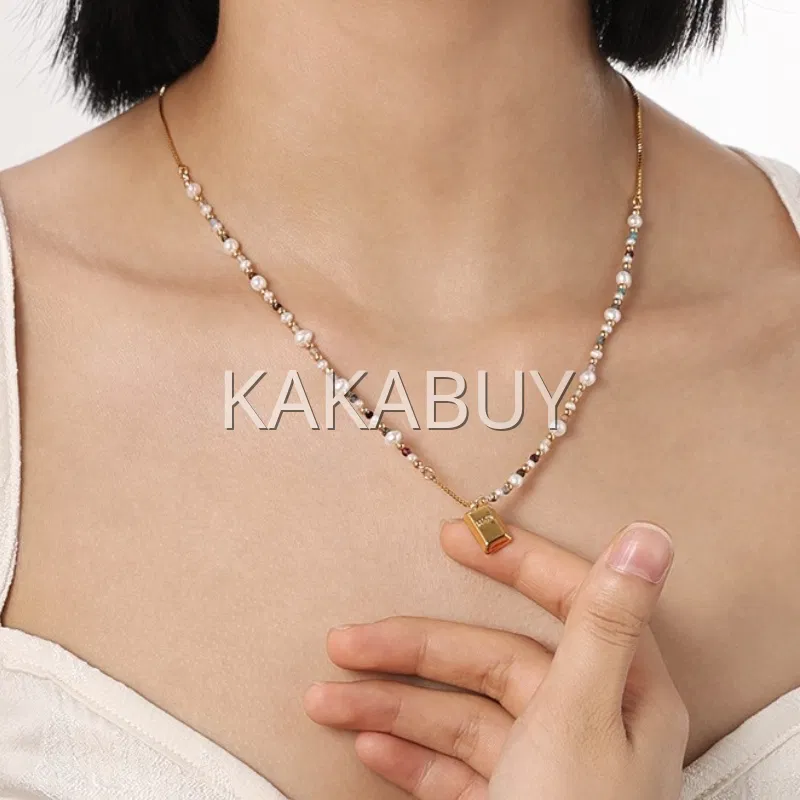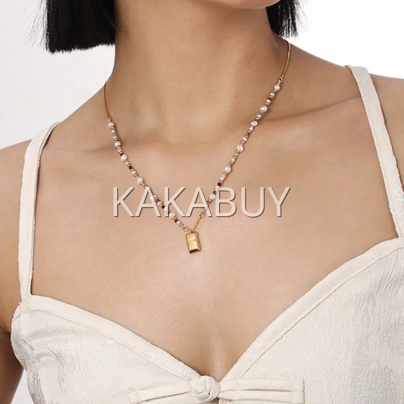 轻奢金色小方糖珍珠项链