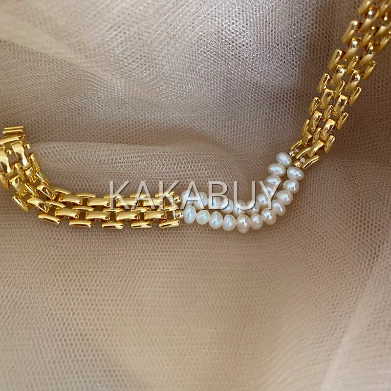 轻奢金色小方糖珍珠项链
