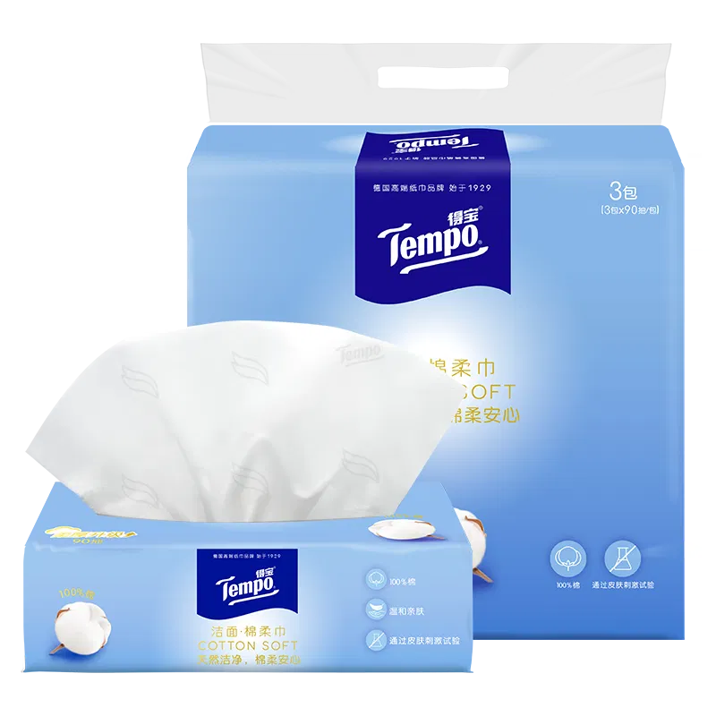 【3包】Tempo得宝 洁面棉柔巾 90抽*3包入