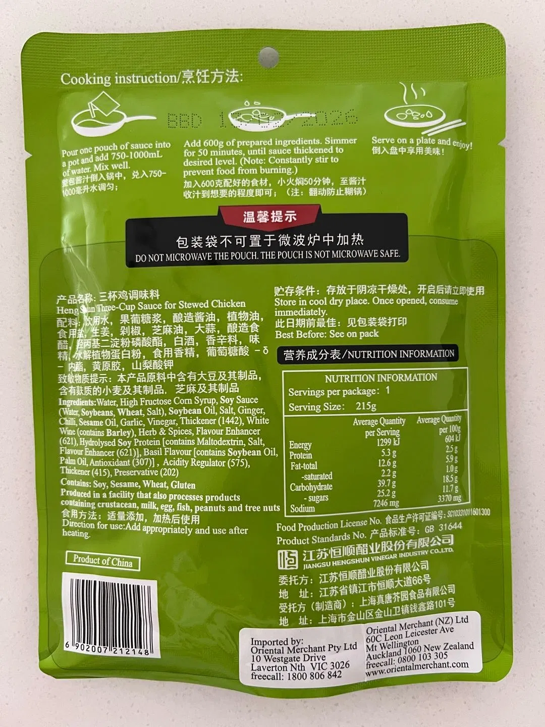 恒顺 红烧肉酱料包 215g