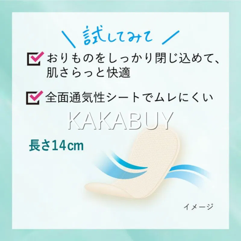 日本KAO花王 LAURIER乐而雅 银离子消臭抑菌卫生护垫 清新薄荷香 14cm*62片