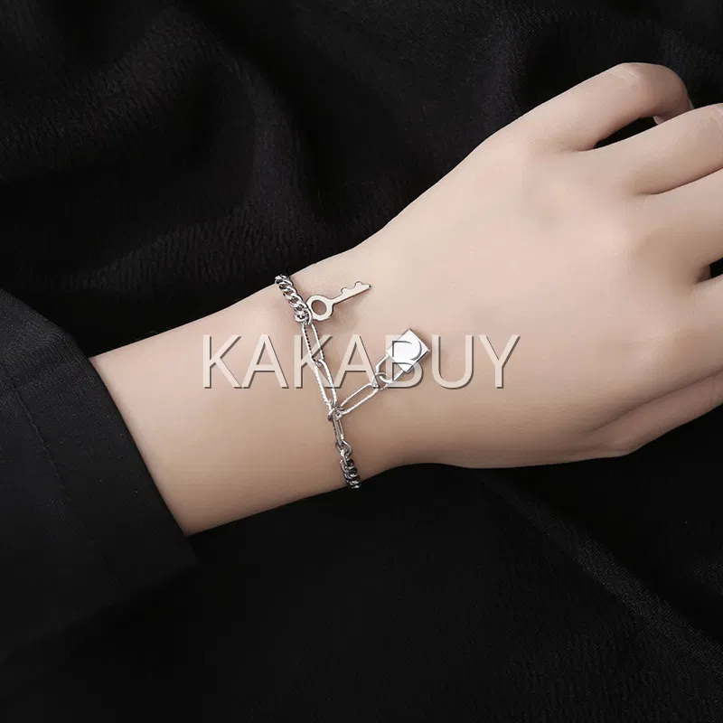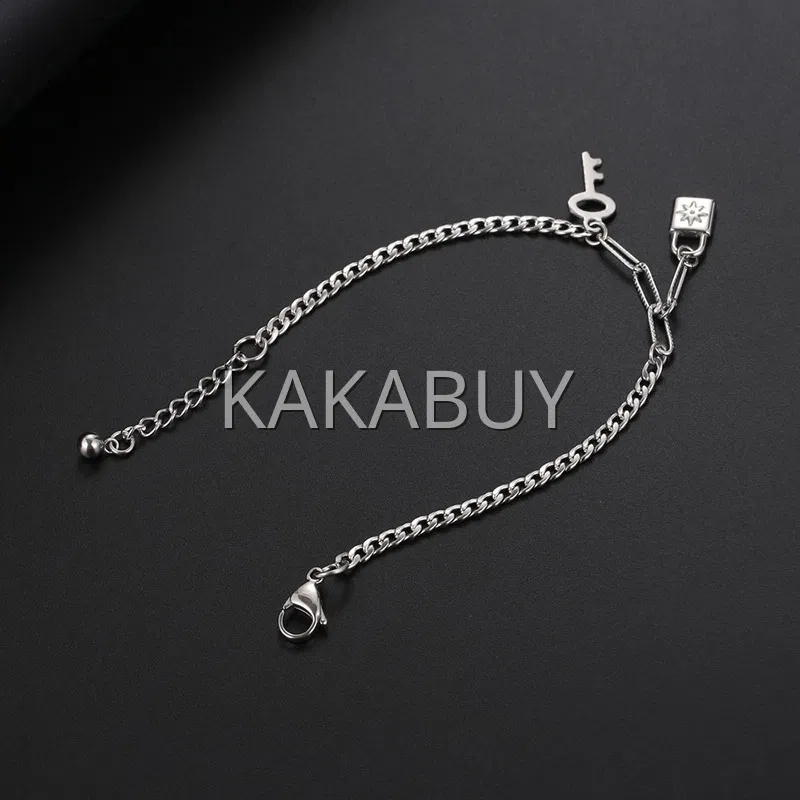 明星同款嘻哈方形扣钛钢手链 17cm