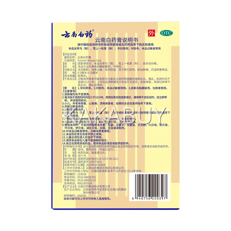 包装瑕疵丨云南白药 消炎镇痛膏 4贴