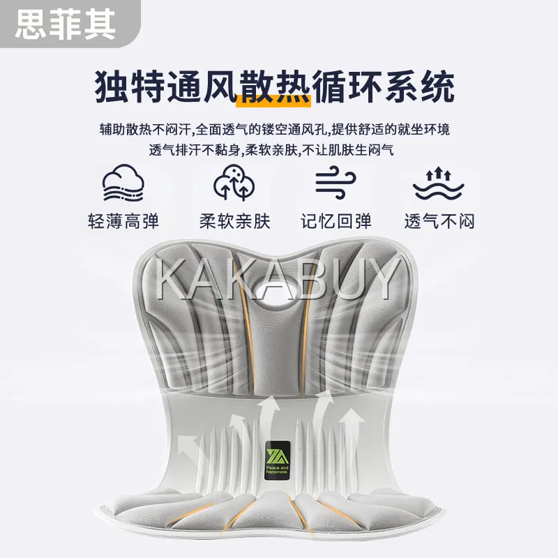 思菲其 人体工学护腰坐姿椅垫 灰色 加大款